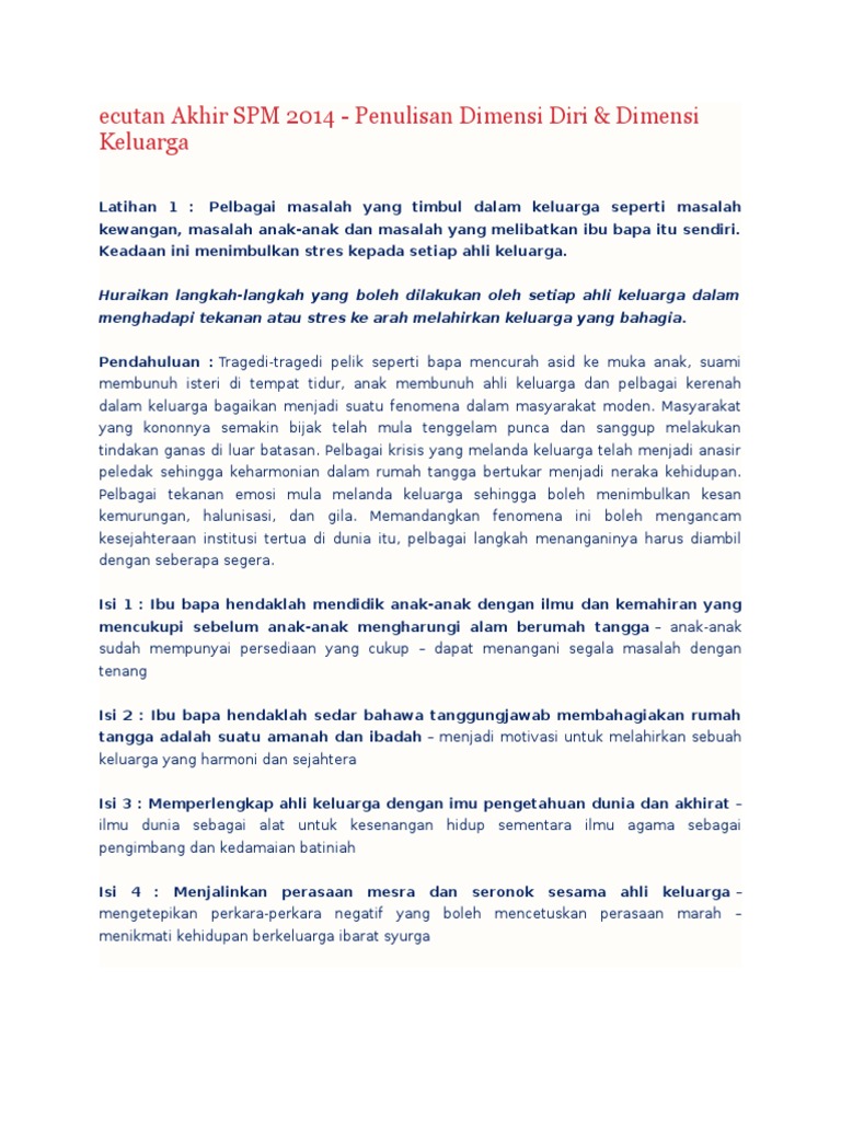 Laman Bahasa Melayu Spm Hasilan Karangan Dimensi Keluarga Peranan Keluarga Dalam Menangani Masalah Sosial Skop Markah Cemerlang Atas Kelas 5 Sains